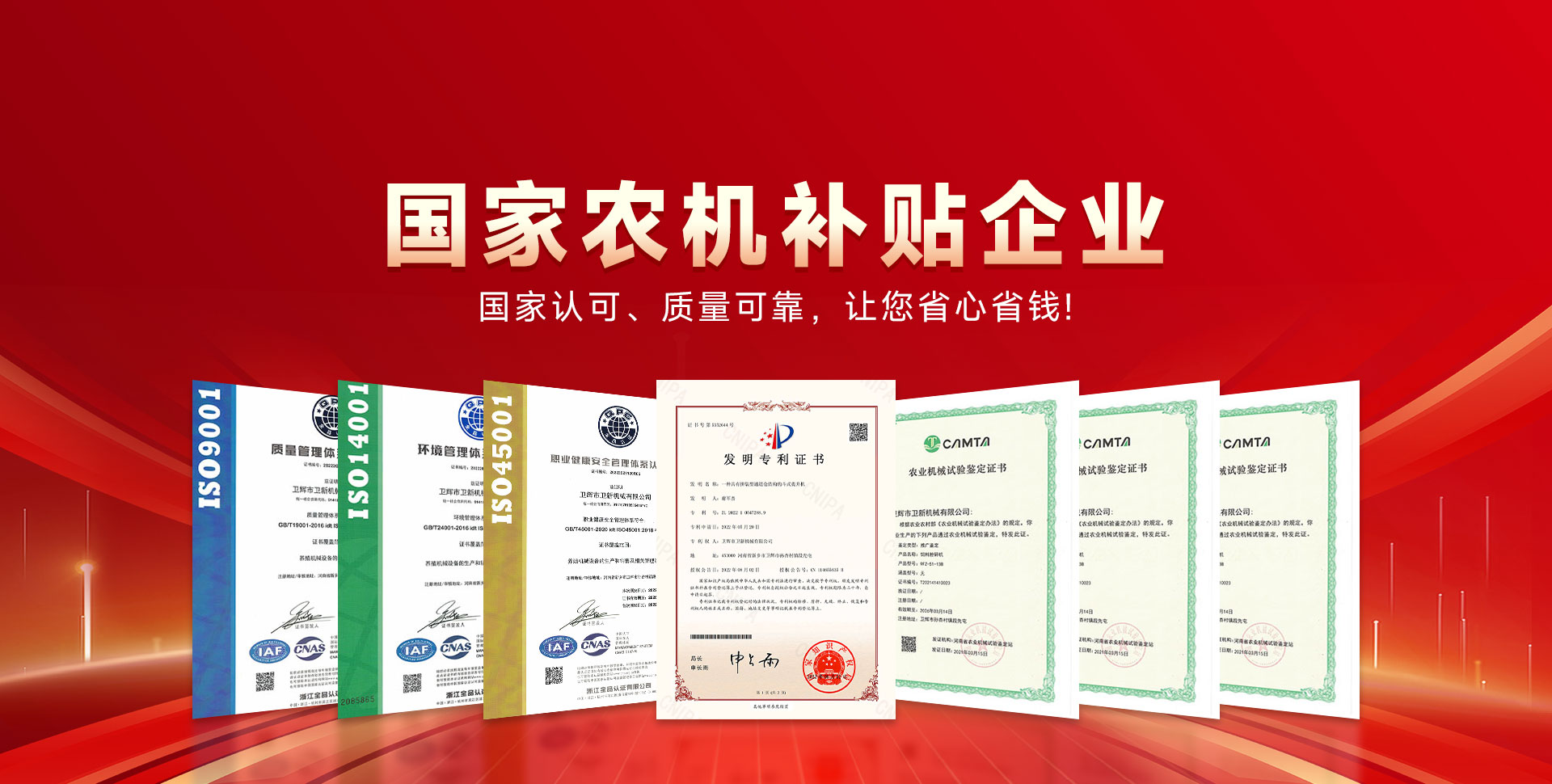 中國 河南衛輝市衛新機械有限公司坐落在中原歷史名城衛輝市,是一家集養殖機械產品研發、制造、銷售于一體的多元化高新科技公司。公司注冊資金500萬元、現有員工100余人,我們以國際企業為標準,高起點;高標準的從事養殖機械產品的研究與推廣。產品曾多次獲得上級產品質量獎,目前產品暢銷三十多個省市自治區,享有良好的市場榮譽,贏得了用戶的好評。  公司始終堅持以嚴格的管理制度,保證高質量的產品服務用戶。有品質才有市場,有改善才有進步。我們相信,提供更好的產品,才是回報客戶更好的辦法。  2019年我公司被定為河南省農機購置補貼企業。同年,我公司與北京機械研究院共同起草了粉碎機的三項國家標準和行業標準。2010年、2012年、2013年我公司被選為農機補貼企業。  我公司是重合同、守信用單位,我們將以更好的產品質量、優惠的價格、良好的售后,竭誠為用戶服務。